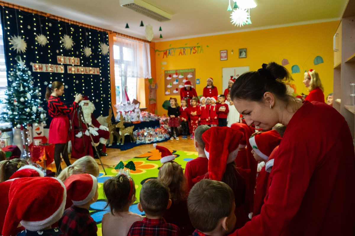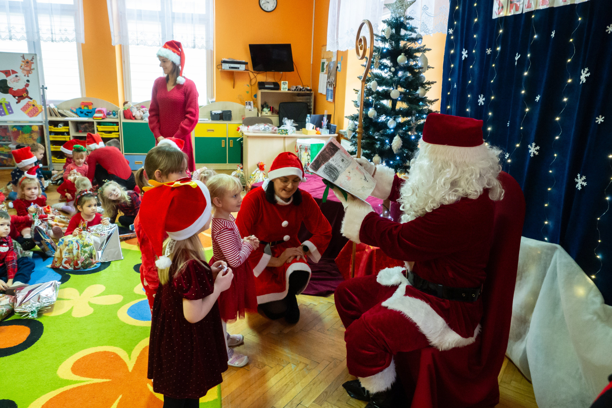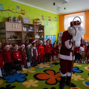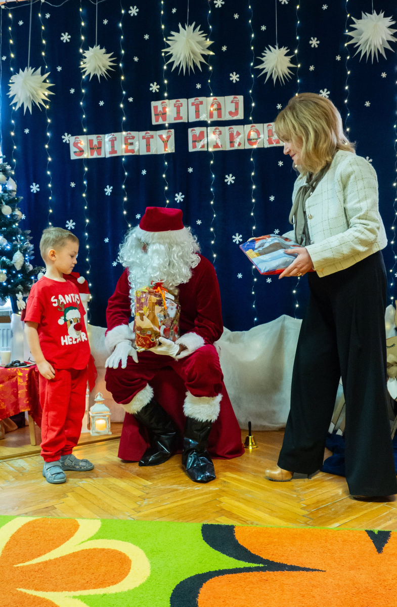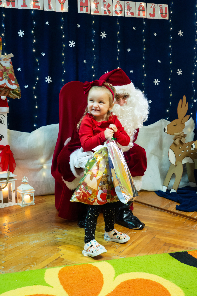 Na twarzach najmłodszych już od rana malowało się wyczekiwanie, a pojawienie się Mikołaja wywołało prawdziwy entuzjazm. Każde dziecko otrzymało paczkę pełną słodkości i drobnych upominków. W przedszkolu panowała ciepła, świąteczna atmosfera, wypełniona śpiewem, uśmiechem i rozmowami z wyjątkowym gościem.