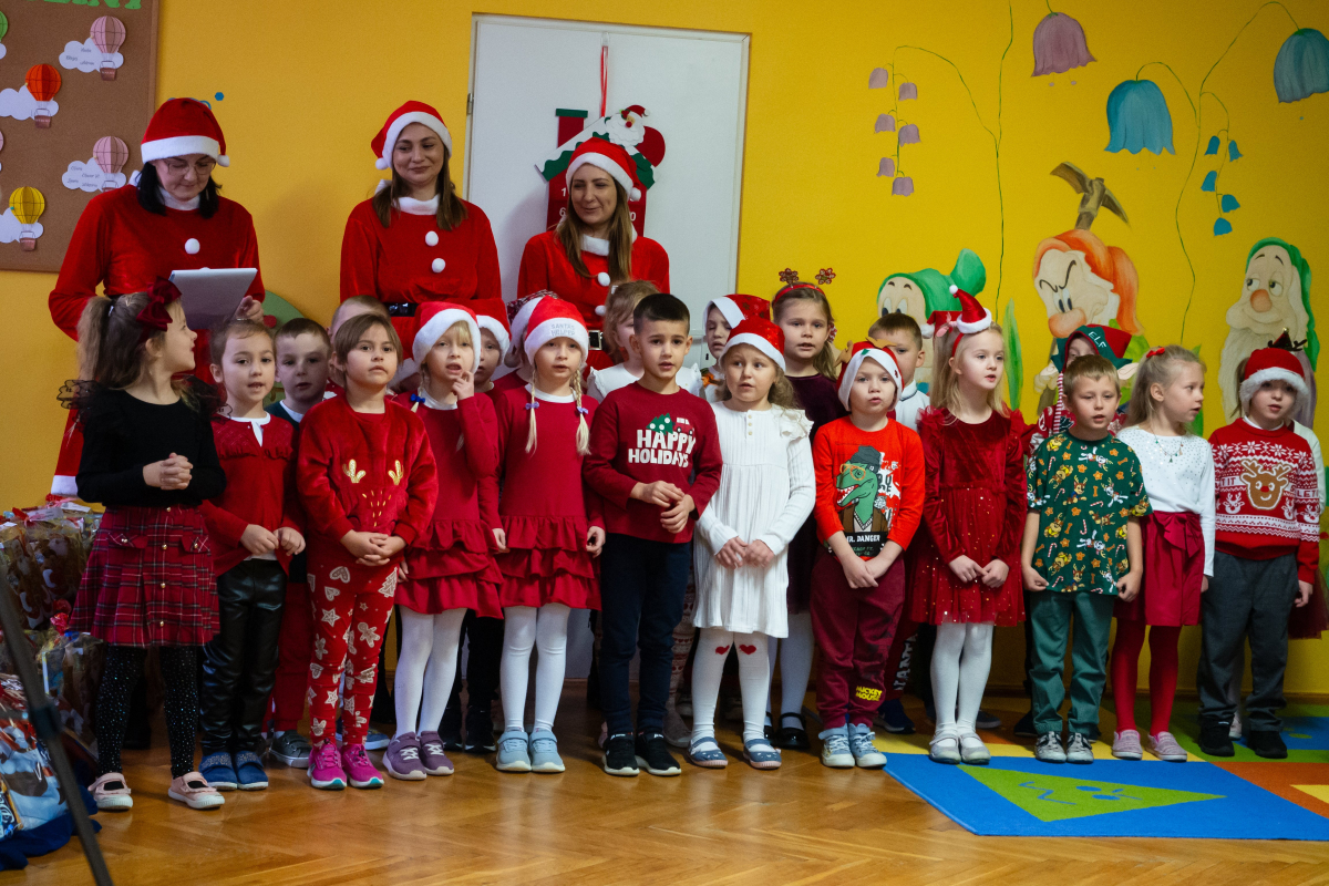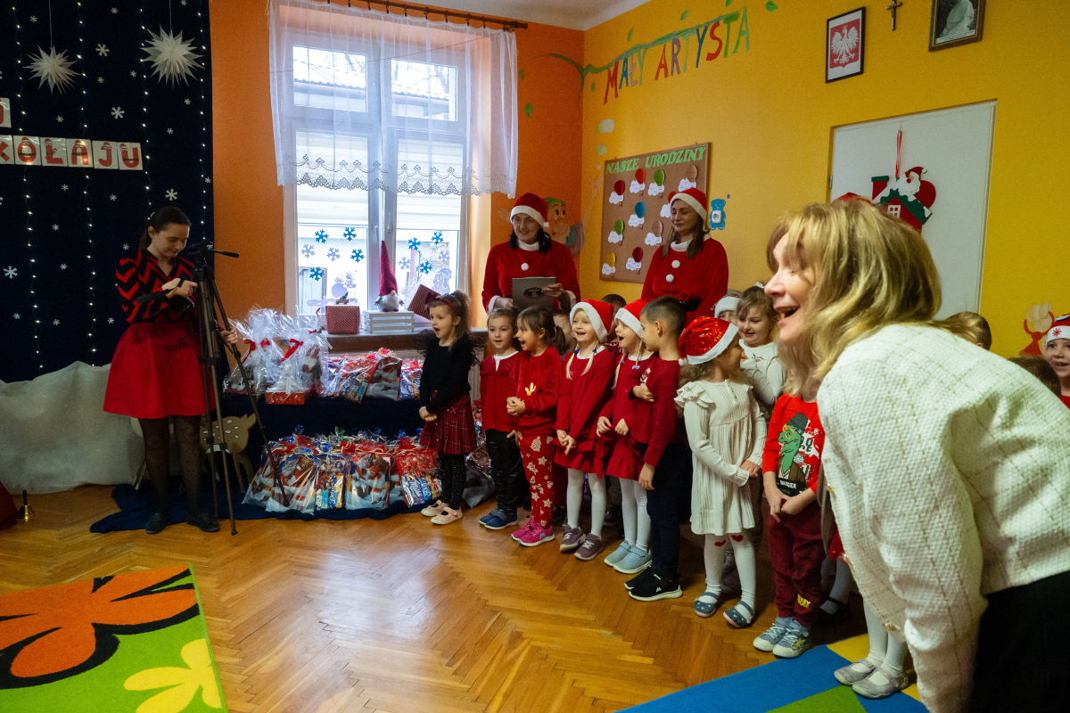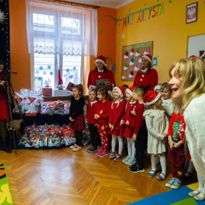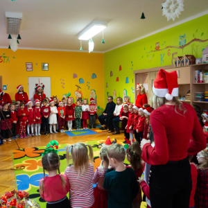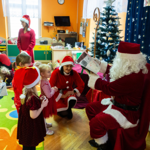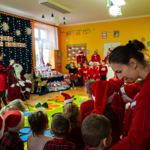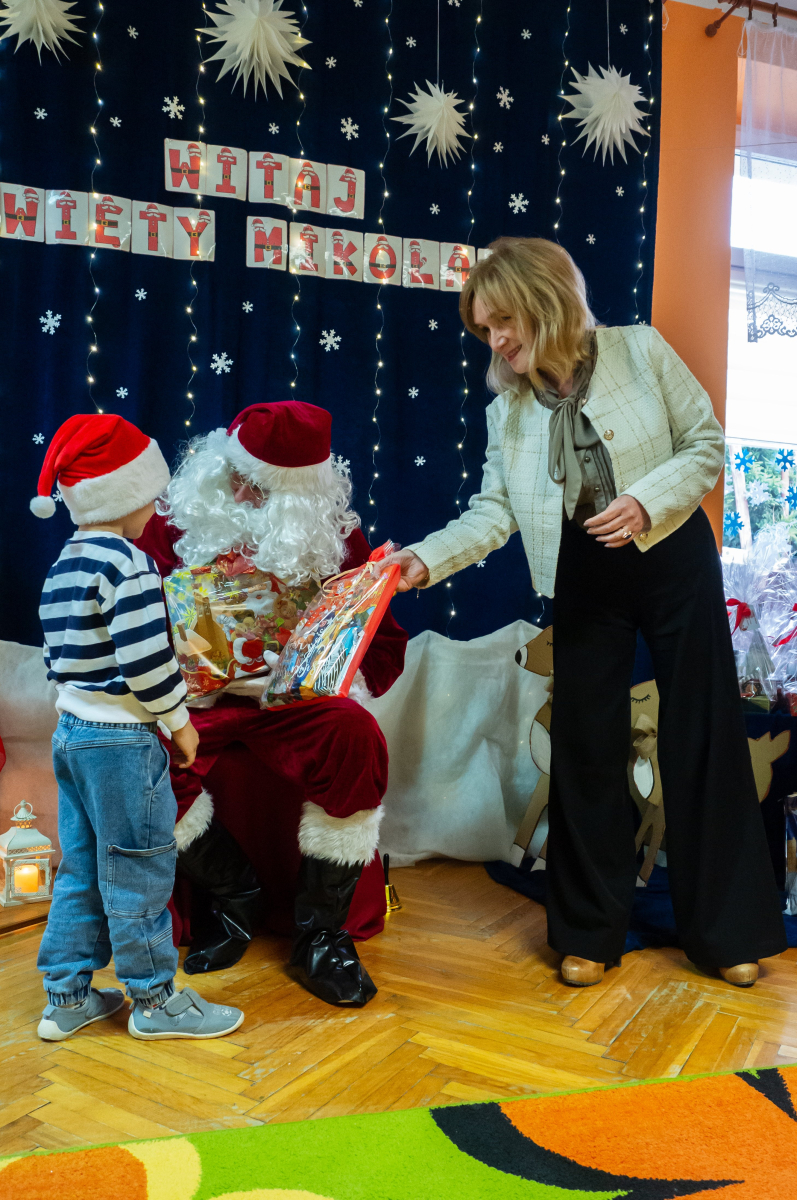 Na twarzach najmłodszych już od rana malowało się wyczekiwanie, a pojawienie się Mikołaja wywołało prawdziwy entuzjazm. Każde dziecko otrzymało paczkę pełną słodkości i drobnych upominków. W przedszkolu panowała ciepła, świąteczna atmosfera, wypełniona śpiewem, uśmiechem i rozmowami z wyjątkowym gościem.