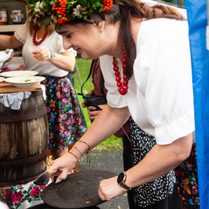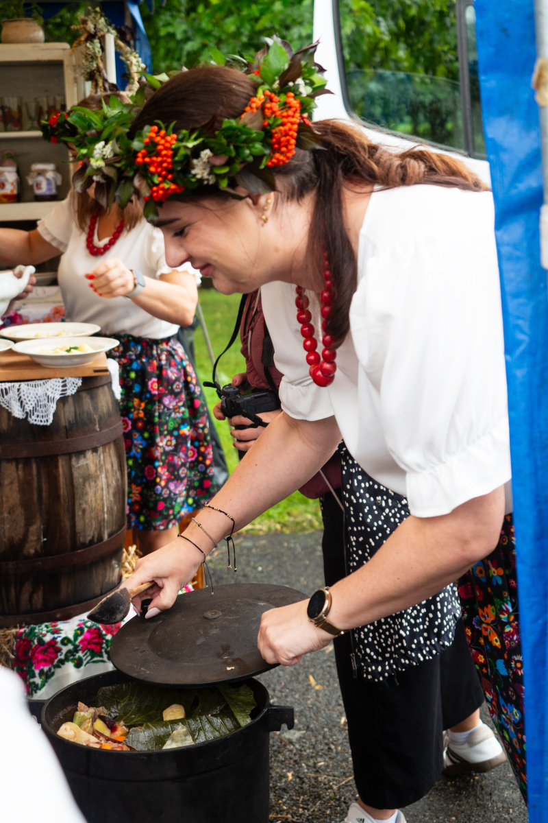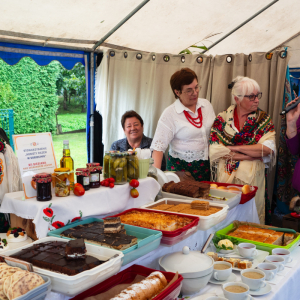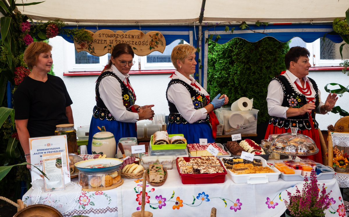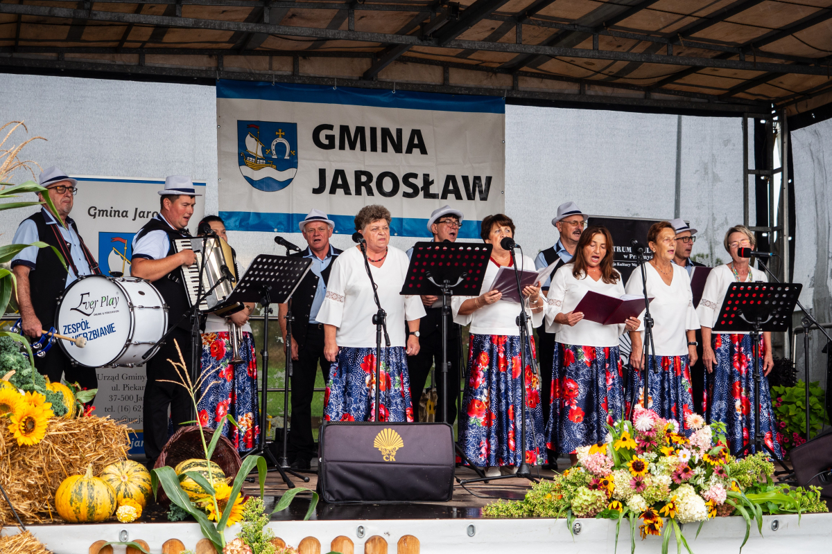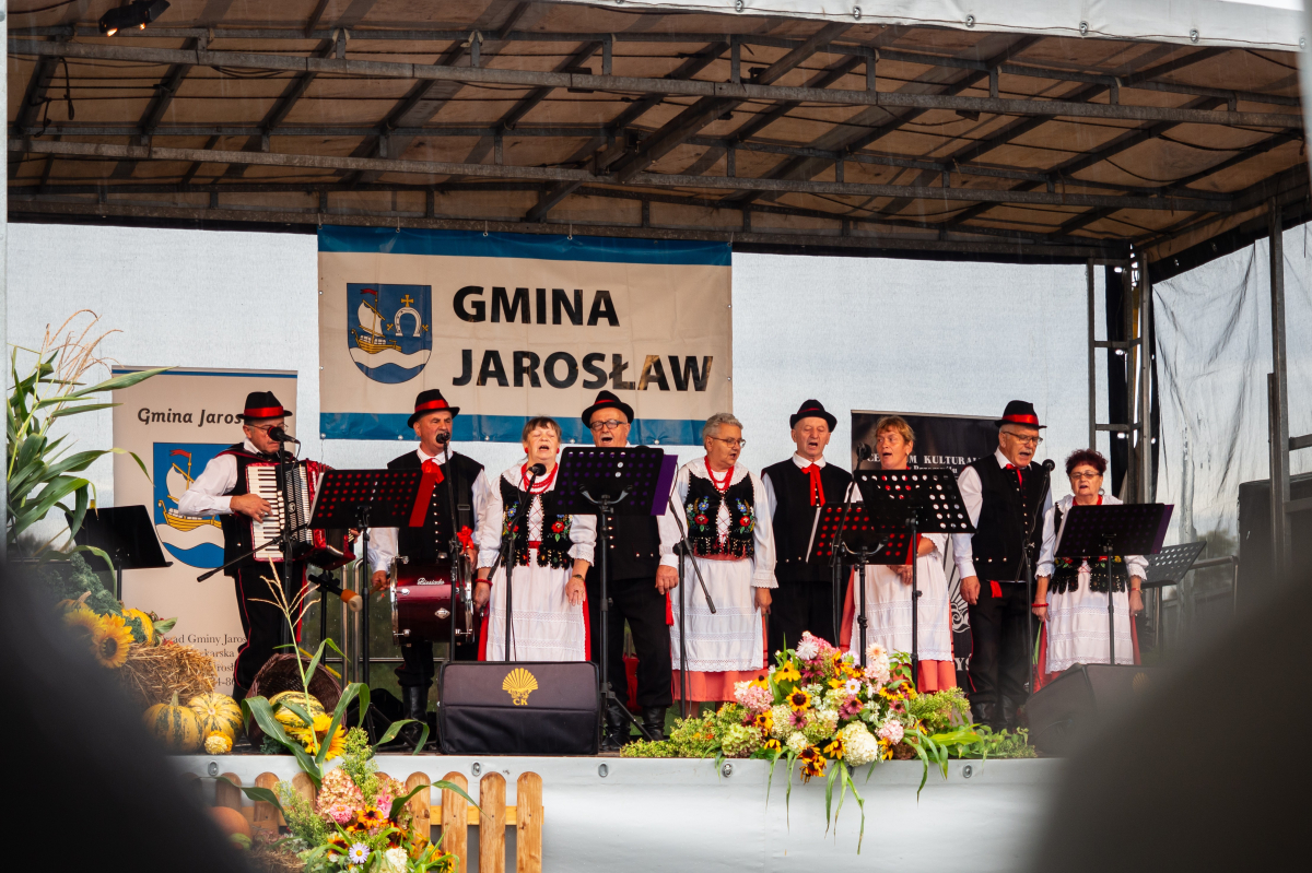 Na uczestników czekała także wystawa dawnych sprzętów gospodarstwa domowego, która przeniosła wszystkich w czasy, gdy codzienność na wsi wyglądała zupełnie inaczej. Ogromnym zainteresowaniem cieszył się również kiermasz „z domowej spiżarni”, na którym można było nabyć regionalne przetwory i wypieki. Swoje stoisko przygotował także Gminny Ośrodek Pomocy Społecznej w Jarosławiu, gdzie można było uzyskać informacje o oferowanym wsparciu. Dla miłośników aktywności i praktycznych umiejętności odbyły się warsztaty survivalu i pierwszej pomocy, a dodatkową atrakcją było stoisko informacyjne prezentujące założenia programu LIFE. Nie zabrakło także muzycznych akcentów – scenę rozgrzały występy Zespołu Pieśni Biesiadnej „Wierzbianie” z Wierzbnej oraz Zespołu Pieśni Ludowej „Biesiada” z Tuczemp, które wprowadziły publiczność w prawdziwie biesiadny nastrój.