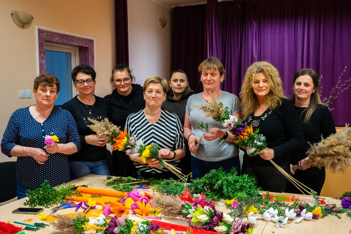 17 marca rozpoczął się cykl warsztatów skierowanych do stowarzyszeń oraz Kół Gospodyń Wiejskich z terenu gminy Jarosław. Ich celem było podtrzymanie i popularyzacja pięknej, ludowej tradycji tworzenia palm wielkanocnych. Pierwsze spotkanie odbyło się w Morawsku, gdzie uczestniczki – przy wsparciu prowadzącej Elżbiety Dykas – poznawały tajniki wykonywania kwiatów z krepiny oraz budowania efektownych palm na Niedzielę Palmową. Nie zabrakło zaangażowania i dobrej energii – aktywnie w zajęcia włączyły się panie ze Stowarzyszenia „Razem w Przyszłość” w Morawsku, a także dyrektor Gminnego Ośrodka Kultury Artur Bżdżoła i Stella Guminiak - kierownik Klubu Senior+ w Morawsku.