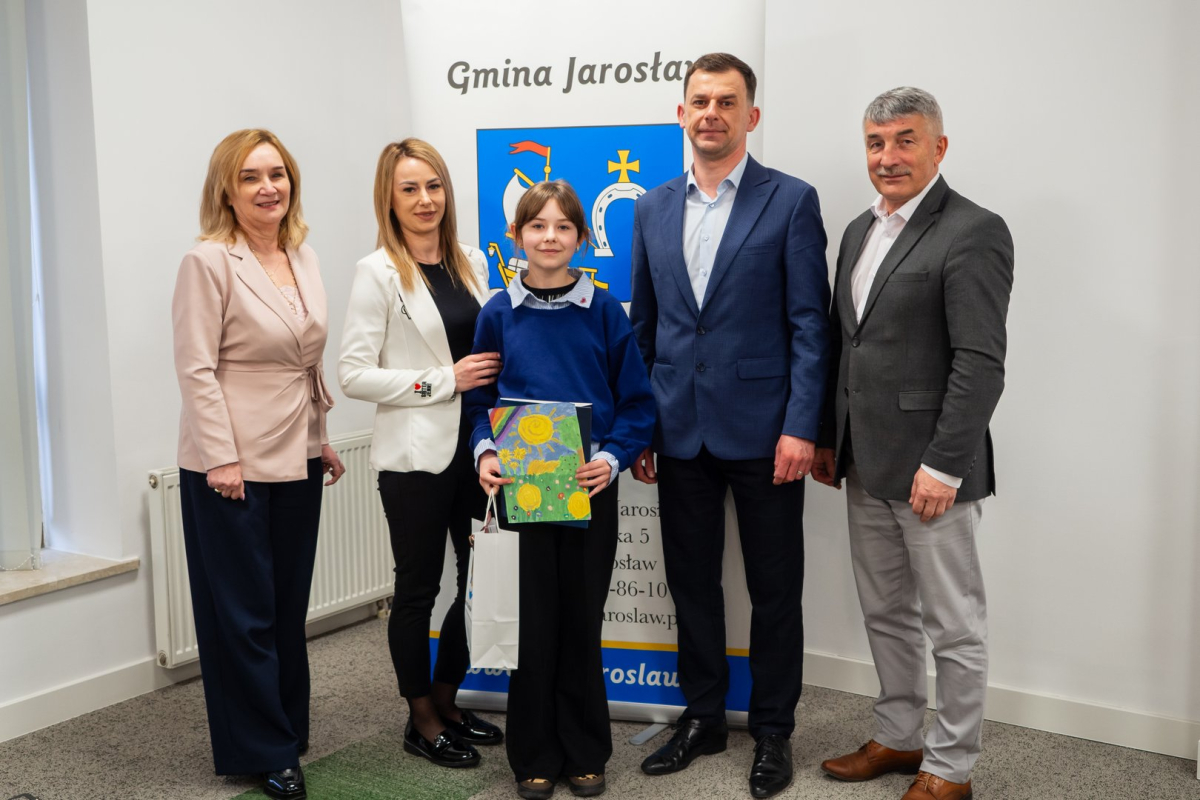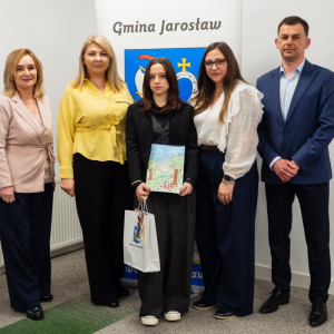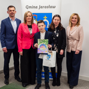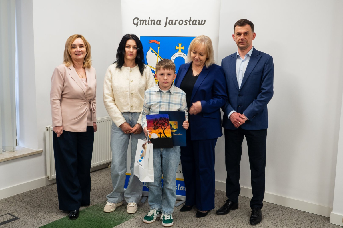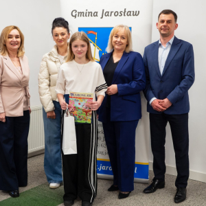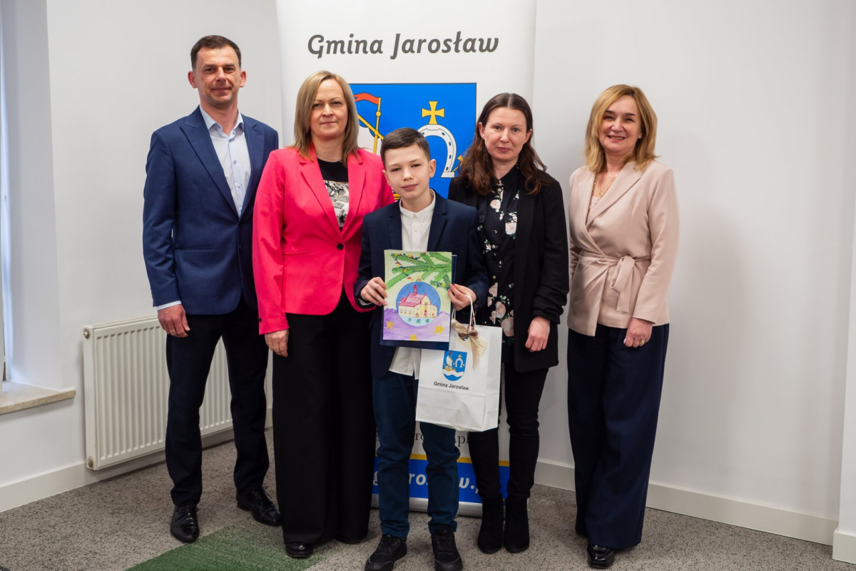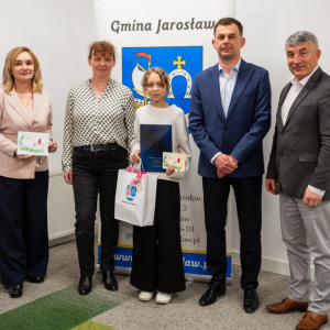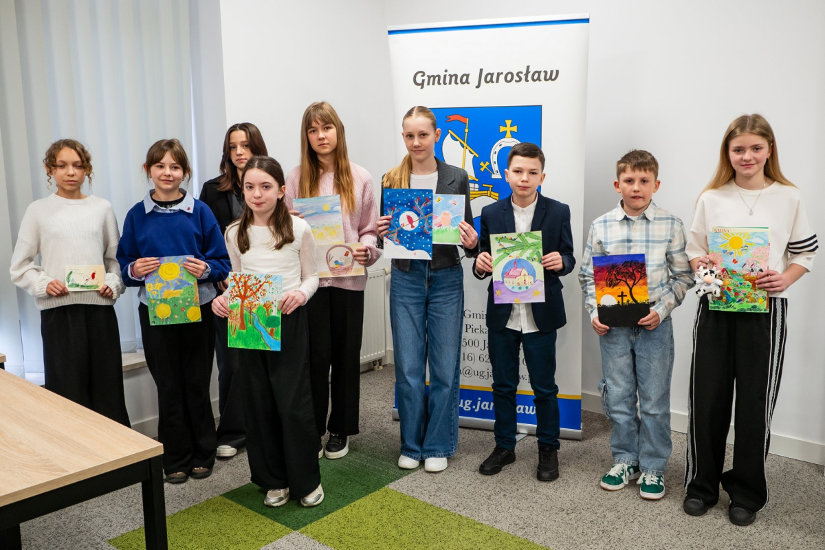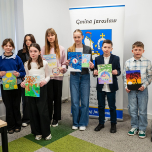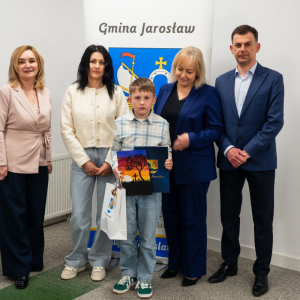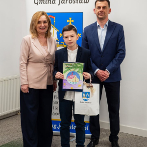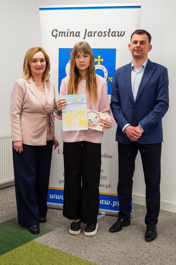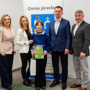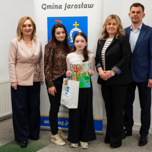 31 marca 2026 r. w Urzędzie Gminy Jarosław odbyło się uroczyste wręczenie nagród laureatom gminnych konkursów plastycznych: na „Najpiękniejszą kartkę wielkanocną” oraz “Cztery pory roku w gminie Jarosław”. Nagrody wręczyli wójt gminy Jarosław Elżbieta Grunt razem z dyrektorem Gminnego Ośrodka Kultury w Jarosławiu Arturem Bżdżołą.