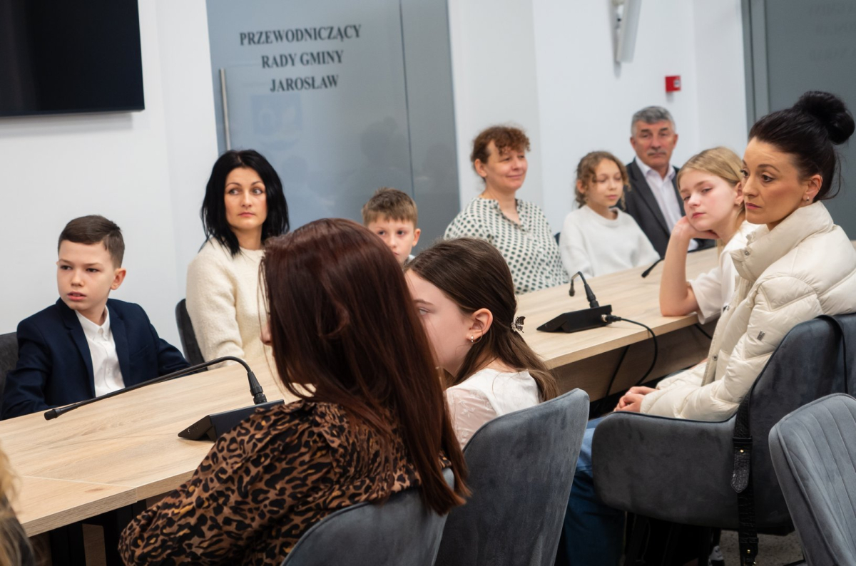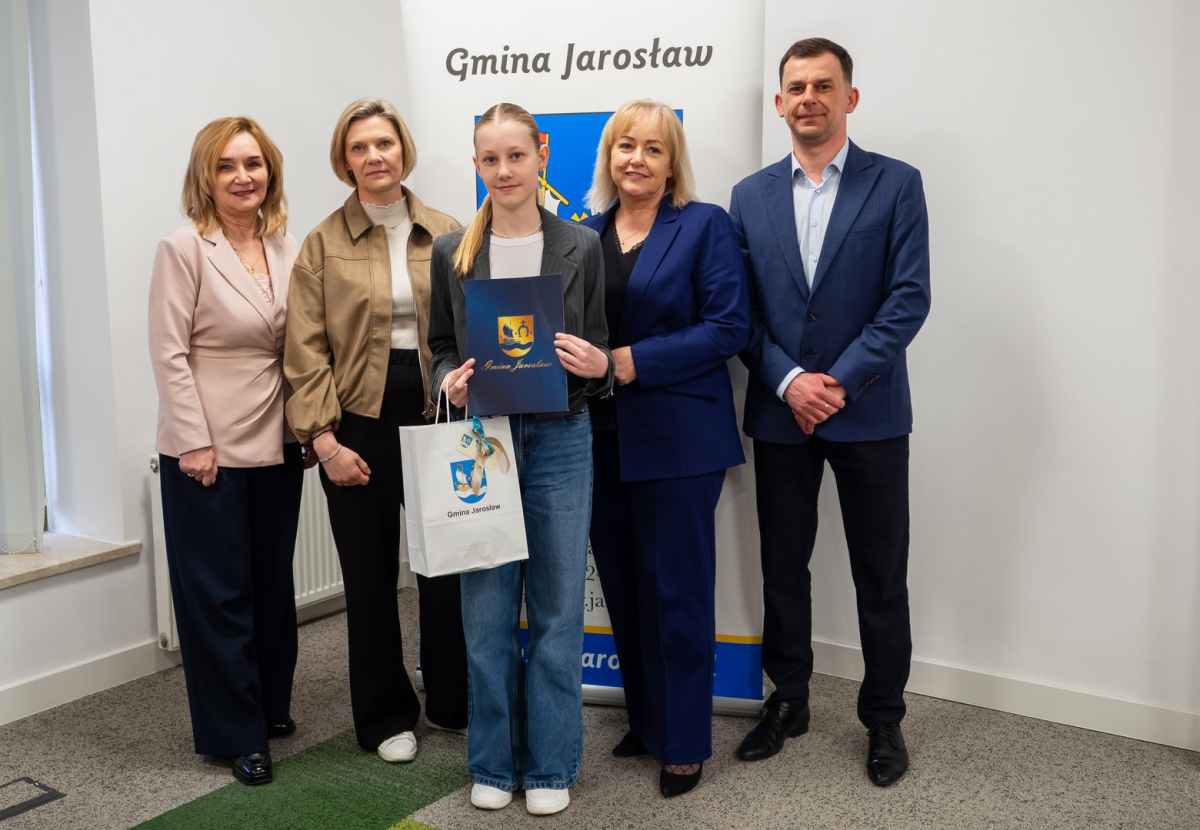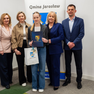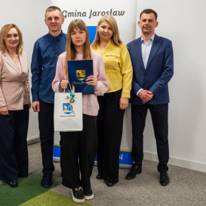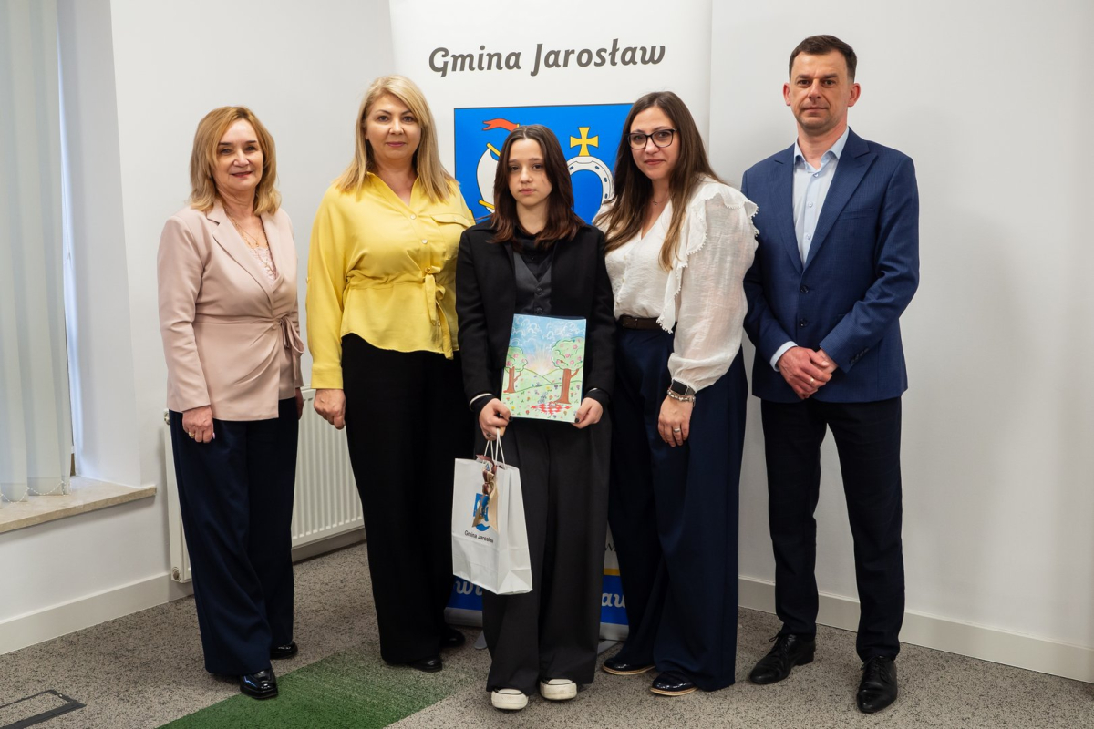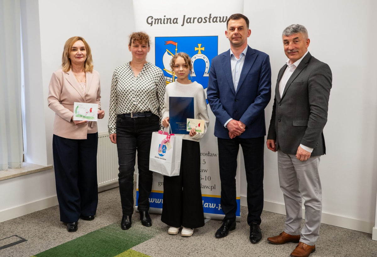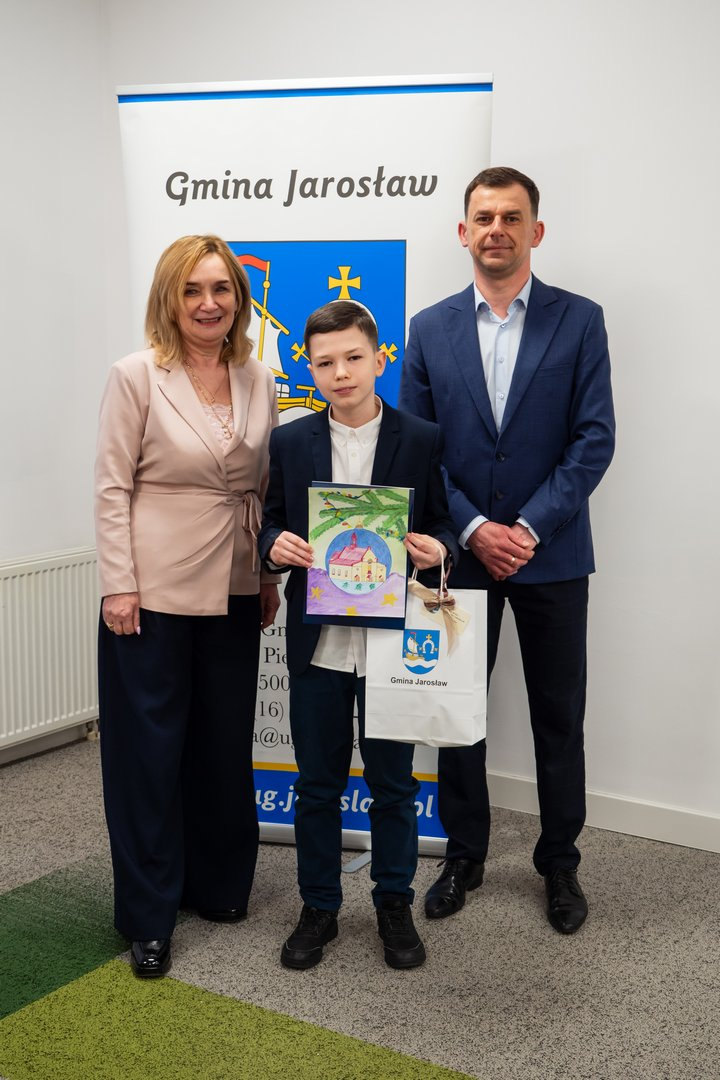 31 marca 2026 r. w Urzędzie Gminy Jarosław odbyło się uroczyste wręczenie nagród laureatom gminnych konkursów plastycznych: na „Najpiękniejszą kartkę wielkanocną” oraz “Cztery pory roku w gminie Jarosław”. Nagrody wręczyli wójt gminy Jarosław Elżbieta Grunt razem z dyrektorem Gminnego Ośrodka Kultury w Jarosławiu Arturem Bżdżołą.